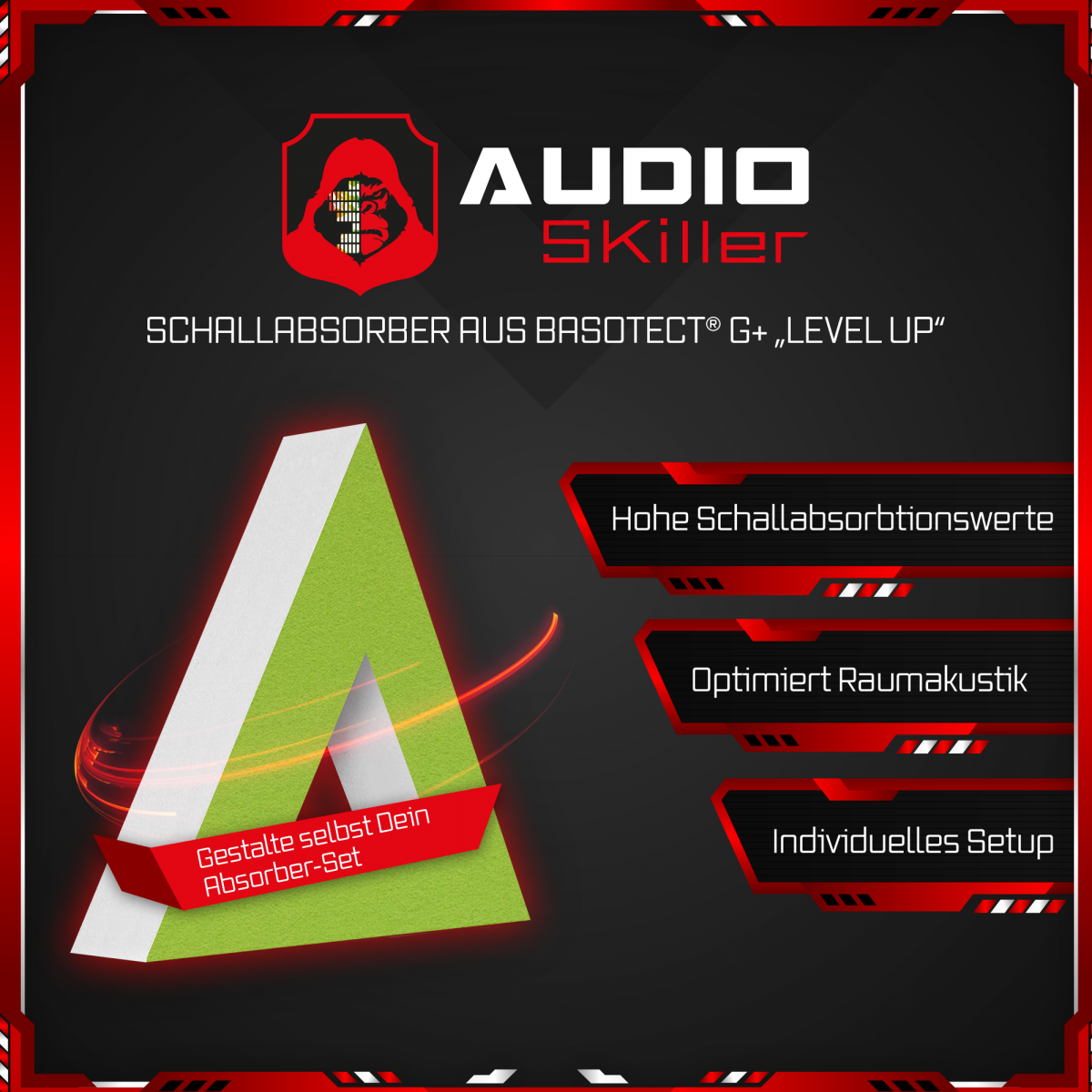 AUDIO SKiller 1 Schallabsorber Element Level UP Dreieck aus Basotect G+® mit Akustikfilz in Hellgrün/Akustikverbesserung für Gamer, Streamer, Youtuber
