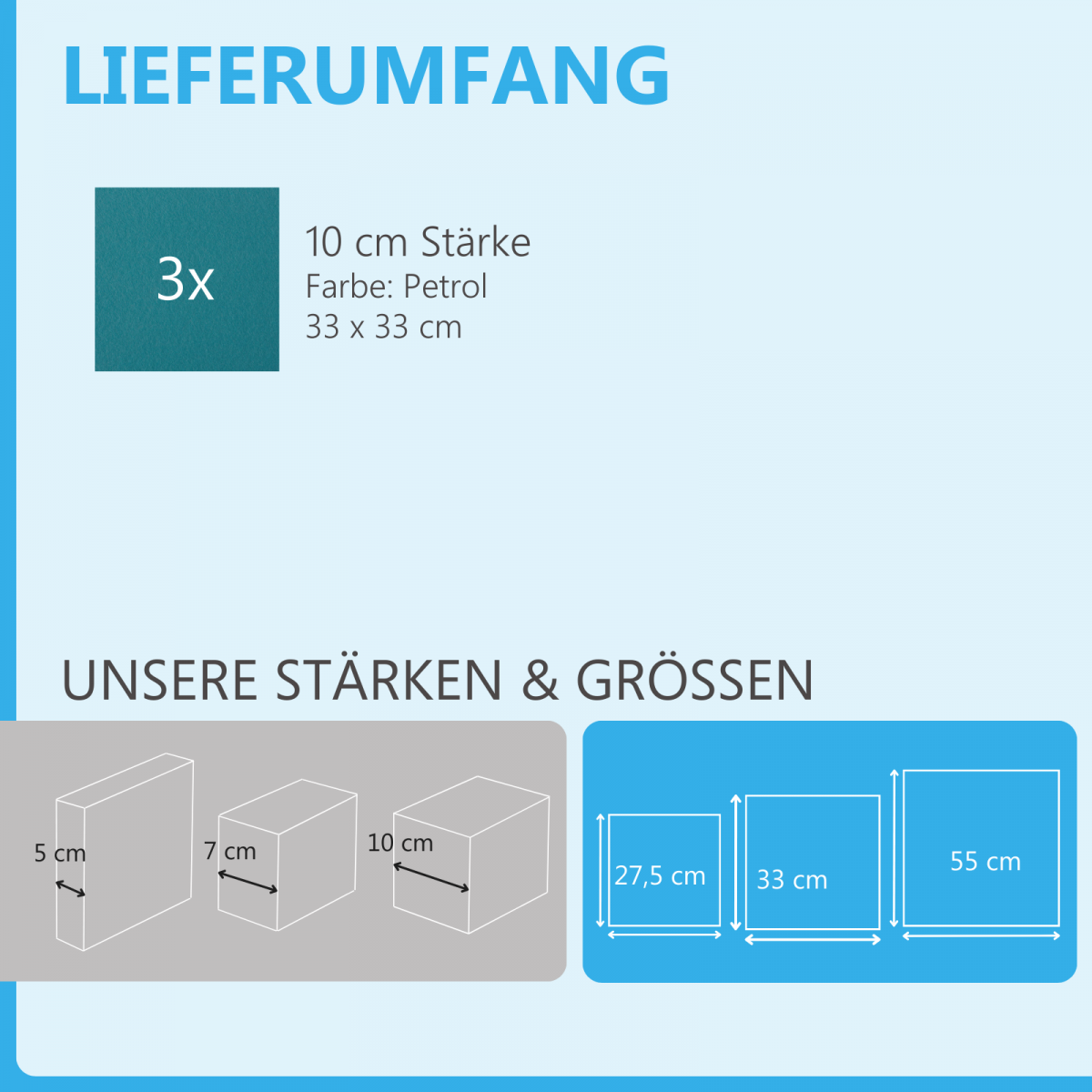 - 3 Regaleinsatz - Elemente je 330 x 330 x 100 mm - Farbe: Petrol
