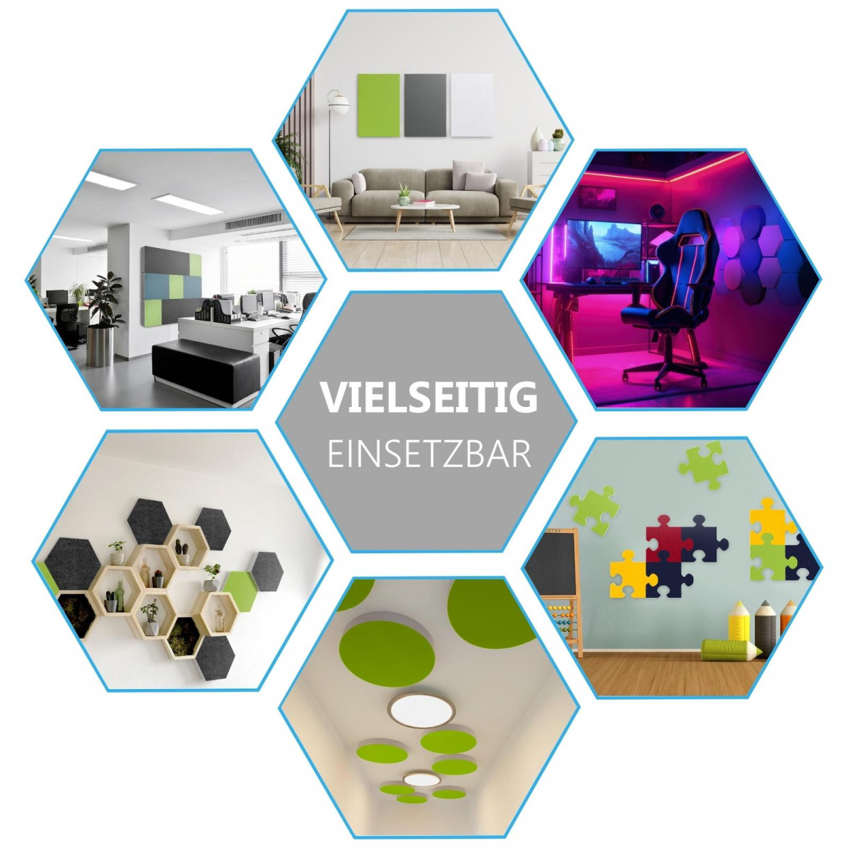 Breitbandabsorber, Raumakustik, Schule, Musikzimmer, Kneipen, Restaurants, Heimkino, Proberaum, Nachhallreduzierung, Kinderzimmer, Kanzleien, Behandlungsräume, Hifi-Anlagen, Autoinnenräume, Wohnmobile, Industrieanwendungen, Besprechungsräume und vieles mehr.